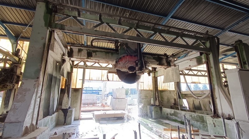 Máquina de talhar blocos com corte horizontal e vertical, da marca Pedrini.