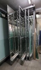 1 máquina de biseladora de vidro "Z Bavelloni CR-1111" (avariada); 1 máquina biseladora de vidro "Z Bavelloni TB-65"; 1 máquina biseladora/polidora de vidro "Z Bavelloni SB-10"; 1 máquina lavadora de vidro vertical "ZAFFERANI STANDARD 130"; 1 máquina de serrar vidro sem marca visível; 1 máquina de furar vidro "METRAL TP"; várias brocas para furar vidro em diamante; 1 compressor de 300L de marca "RUBETE"; 1 lixadeira de vidro sem marca visivel; 6 máquinas de lapidar e fazer arestas sem marca visível; 3 máquinas de polir sem marca visível; 1 maquina de enconche de vidro sem marca visível; 1 mesa de corte automático de vidro de marca "OTEM" (avariada); 1 classificador de vidro p/ 10 lotes de marca "OTEM"; 2 aspiradores industriais sem marca visível; 1 compressor sem marca visível; 1 berbequim de coluna; 1 serra de esquadria; 1 rebarbadora de bancada "DEM"; várias ferramentas elétricas e outras; 1 mesa de rolos para vidro; 2 escadotes articuláveis de alumínio; 1 mesa de corte sem marca visível; 1 impressora "CANNON TS 5151"; 1 expositor; 1 guincho elétrico; vários equipamentos de escritório obsoletos.