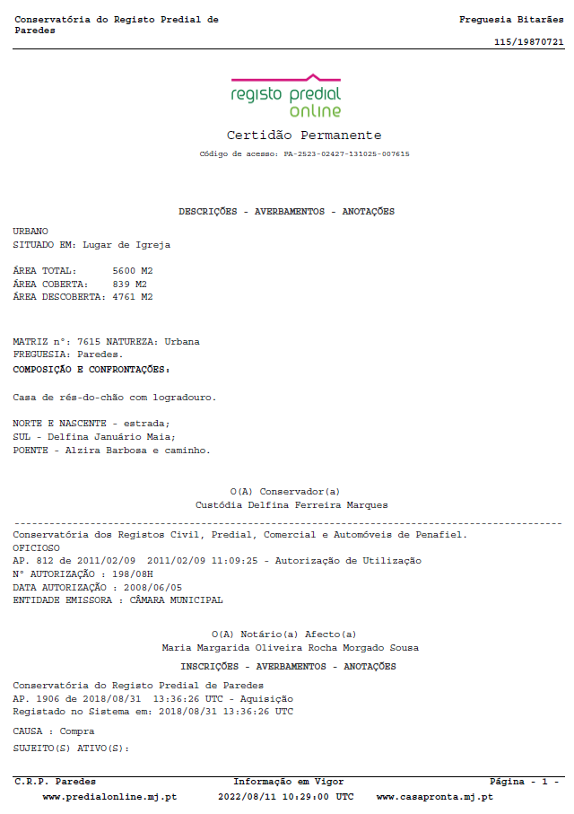 [conservatoria] => Conservatória do Registo Predial de Paredes