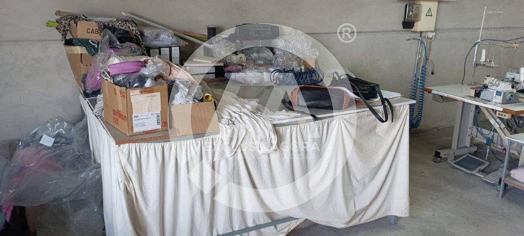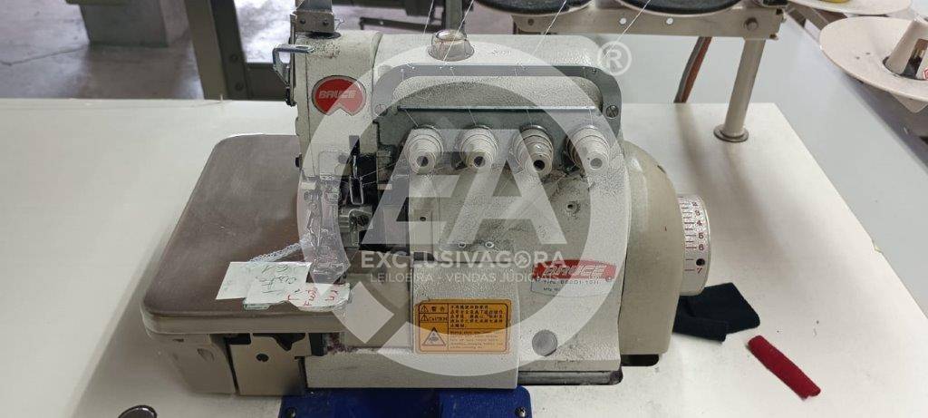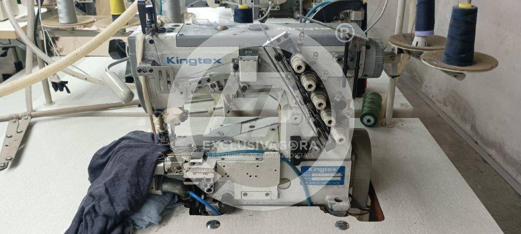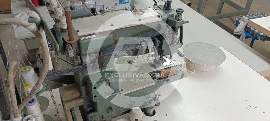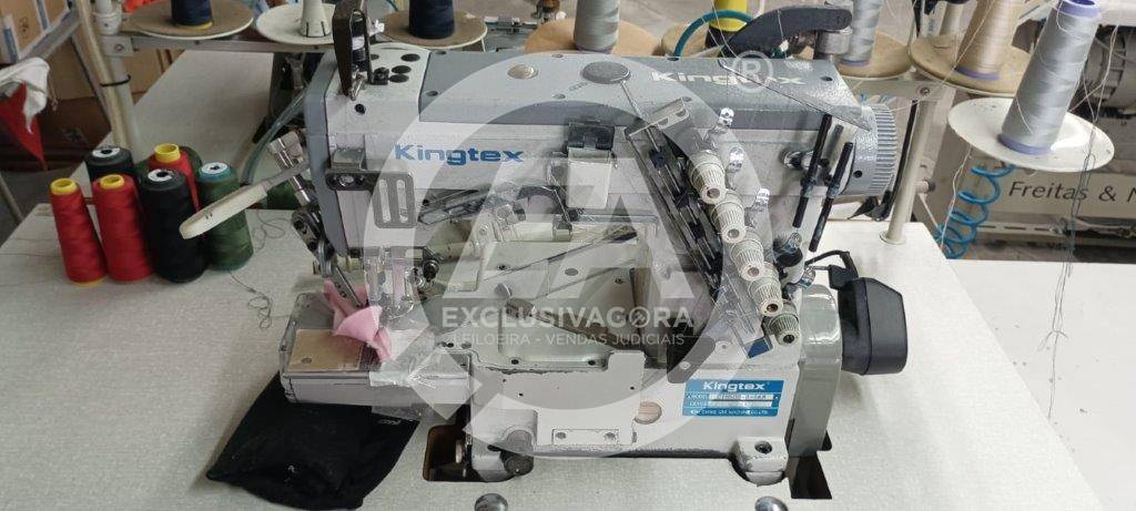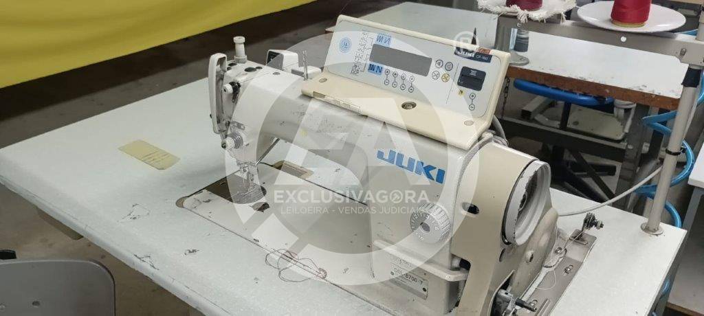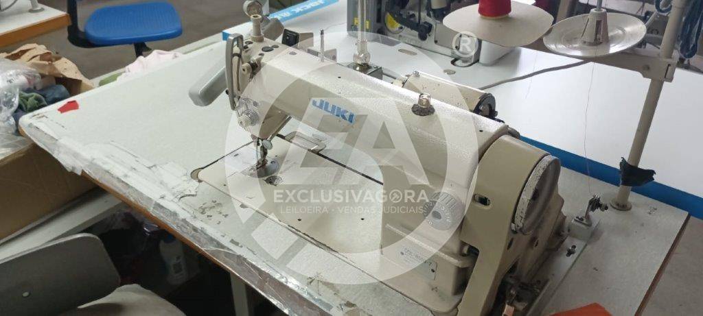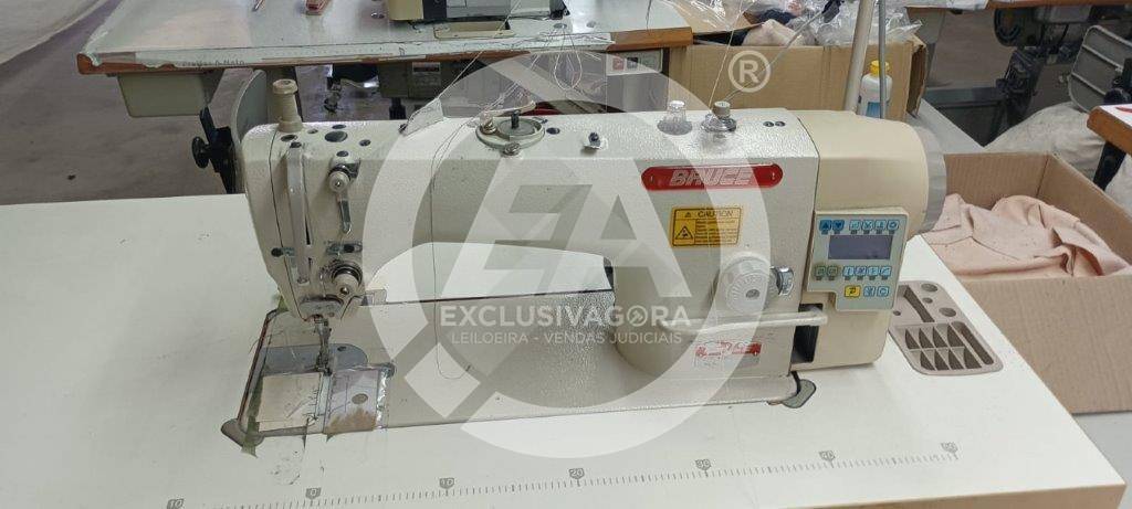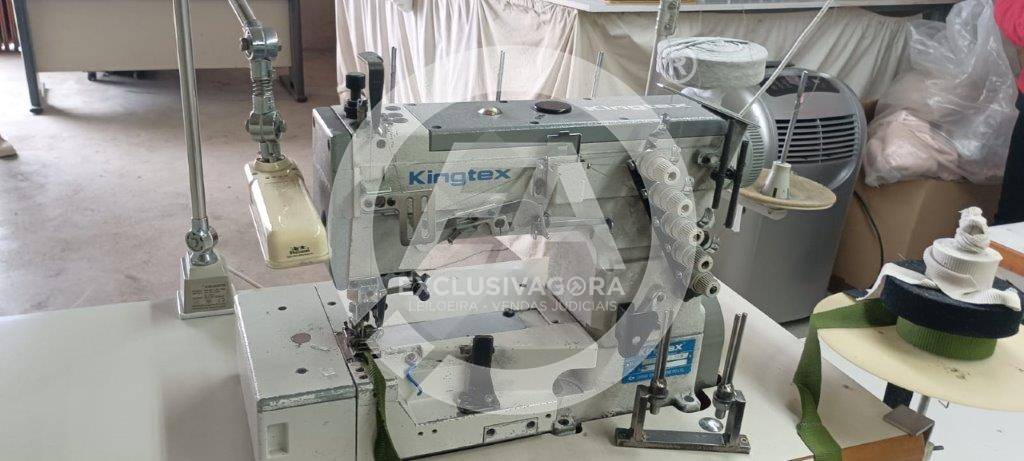 Lote de Equipamentos/Máquinas de Confeção composto por 1 máquina de costura de cloretes, da marca "Kingtex", modelo FT6500-0-56M; 1 máquina de costura de corte e cose, da marca "Bruce", modelo 852DL-13H; 1 máquina de costura de corte e cose, da marca "Kingtex", modelo SH6024; 1 máquina de costura de ponto corrido, da marca "Bruce", modelo 9825E; 1 máquina de costura de ponto corrido, da marca "Juki", modelo DDL-8700-7; 1 máquina de costura de fazer bainhas, da marca "Kingtex", modelo CTL6511-0-56M; 1 máquina de costura de recobrimento, da marca "Kingtex", modelo CT6500-0-56M; 1 máquina de costura de meter tiras, da marca "KansaiSpecial", modelo KS166037; 1 máquina de costura de ponto corrido, da marca "Juki", modelo DDL-8500-7; 1 máquina de costura corte e cose, da marca "Jack"; 1 máquina de costura corte e cose, da marca "Kingtex", modelo SH6003, em estado avariada; 1 máquina de costura corte e cose, da marca "Kingtex", modelo SH6004; 1 bancada de apoio; 2 mesas de trabalho; 1 portátil, da marca "Sony" c/ carregador, modelo SVF152A29M; 1 compressor, da marca "Equipafort", c/ mangueira; 8 cadeiras de trabalho, em mau estado.