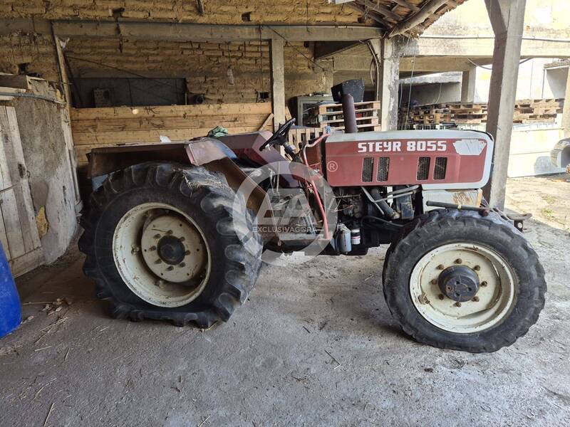 Trator agrícola, com matricula 58-61-AB, da marca Steyr, modelo 8055 A, a Gasóleo, com a cor Vermelho, do ano 1992