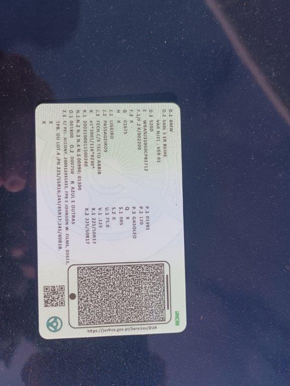 Ligeiro de passageiros, com matricula 67-CV-25, da marca BMW, modelo 520 D, a Diesel, com a cor Azul, do ano 2007, com 379457 kms e 5 lugares.