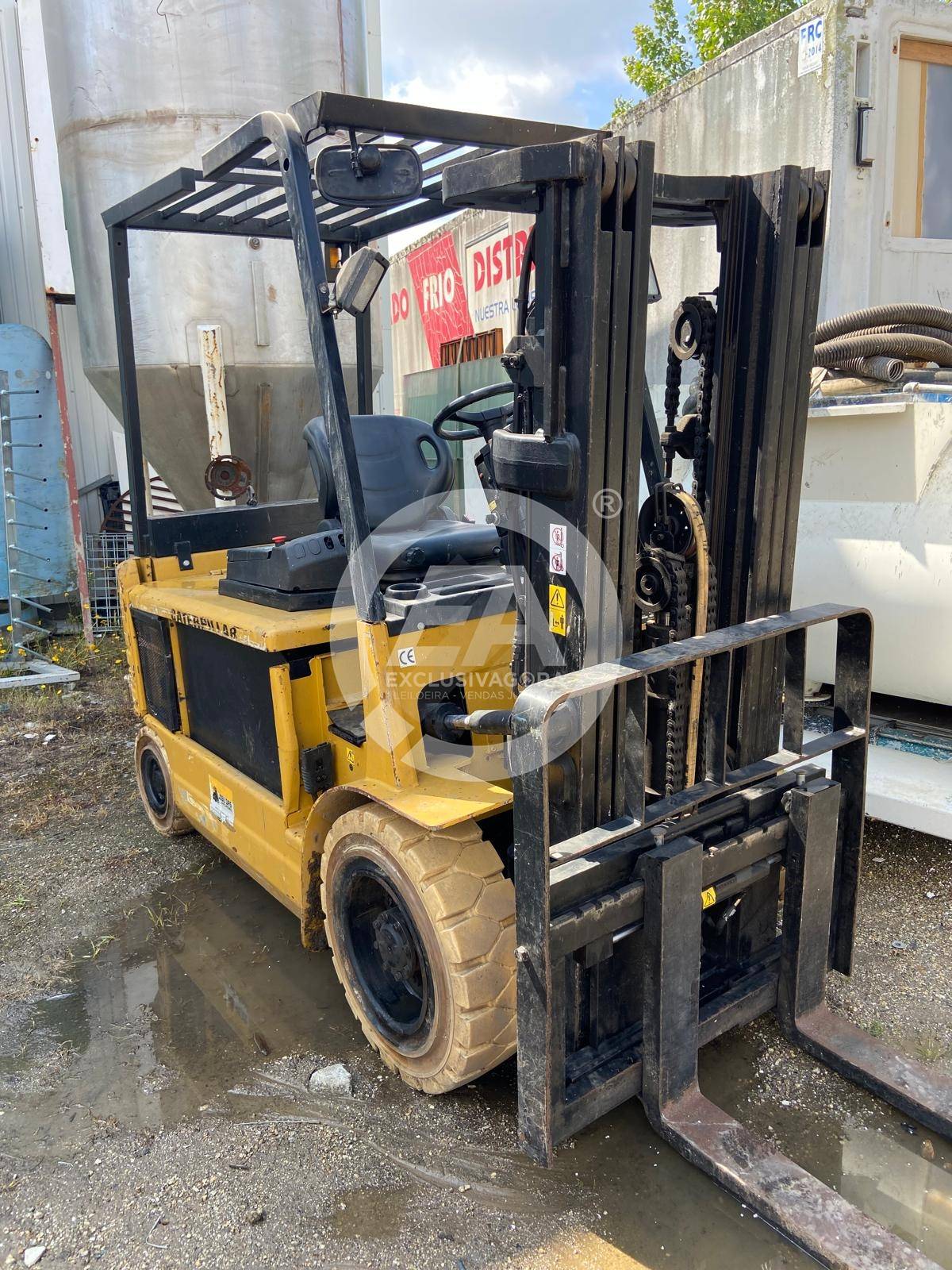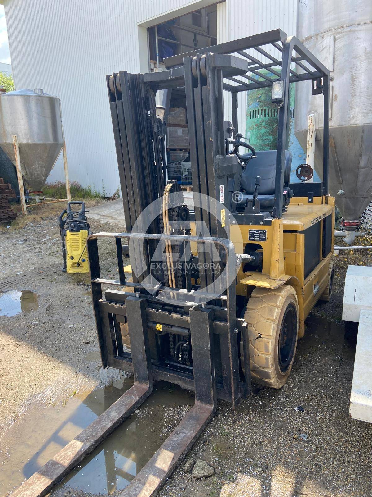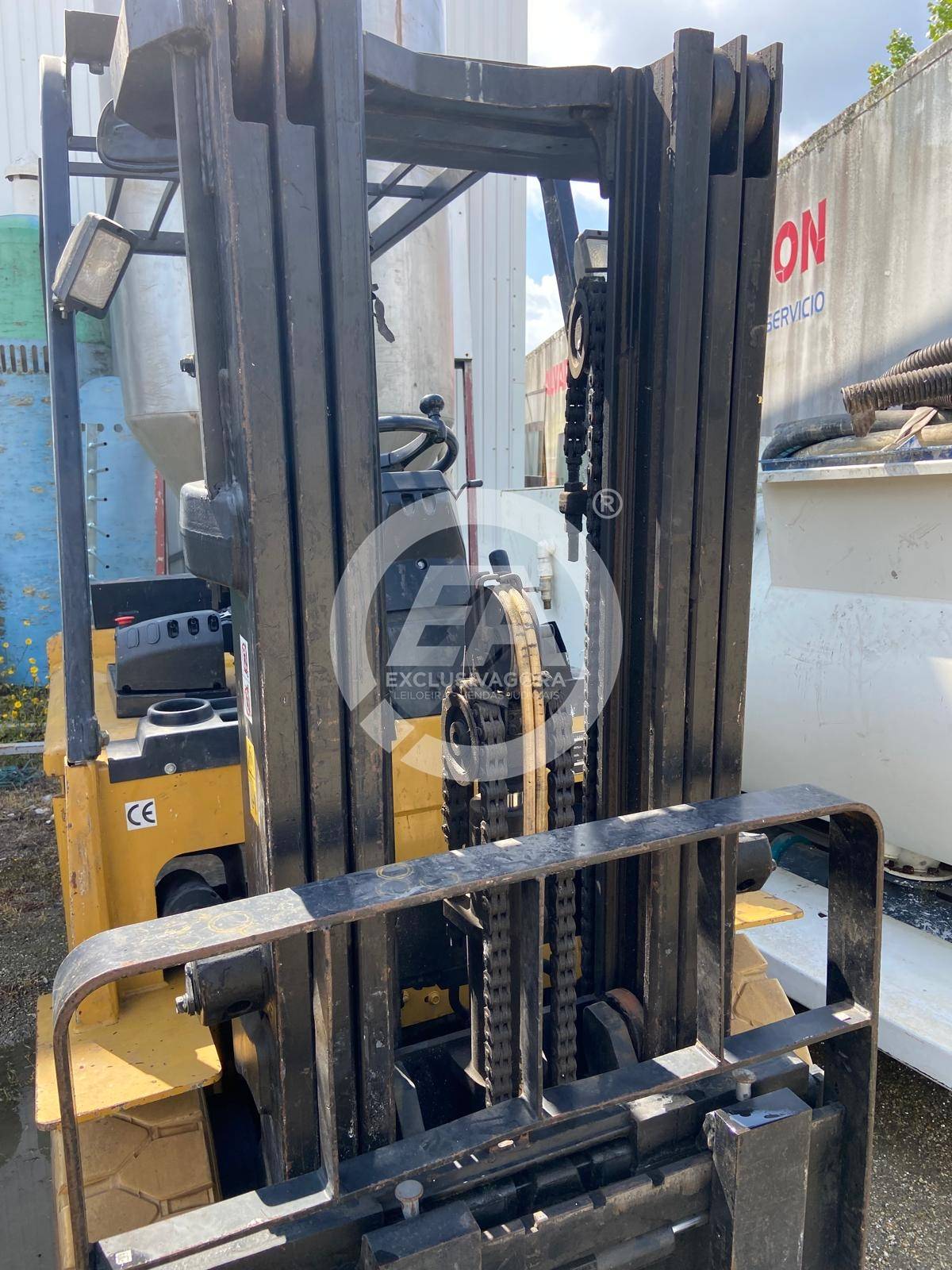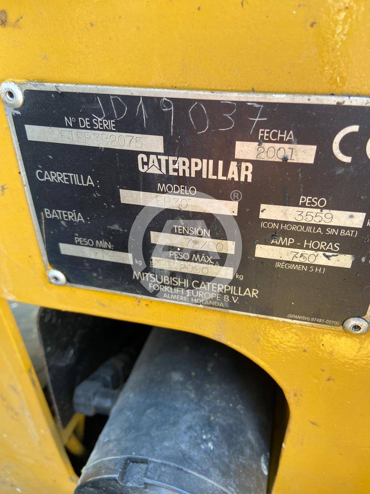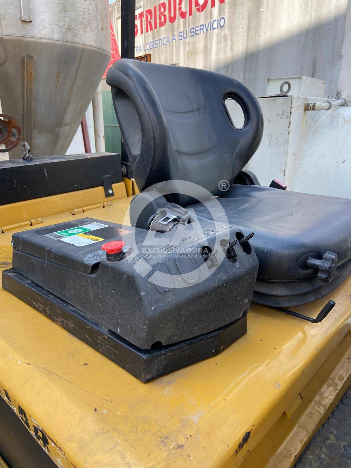 Empilhador elétrico, da marca Caterpillar, modelo EP30, sem bateria.