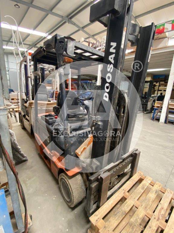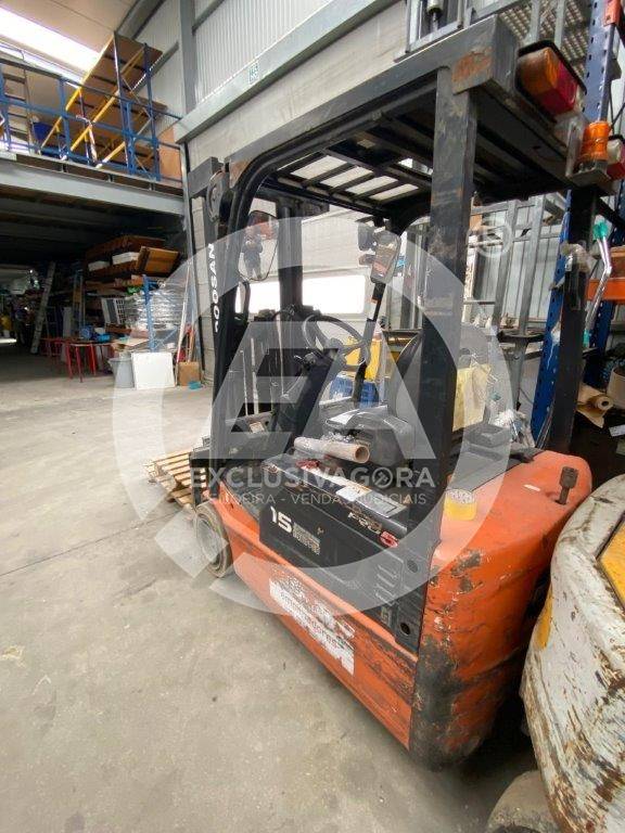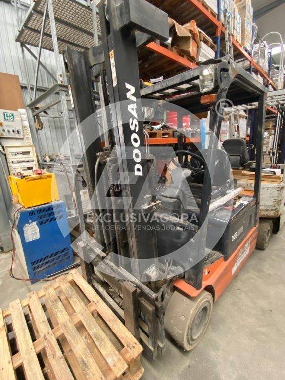 Empilhador elétrico, da marca DOOSAN, c/ bateria fraca.