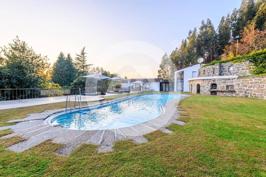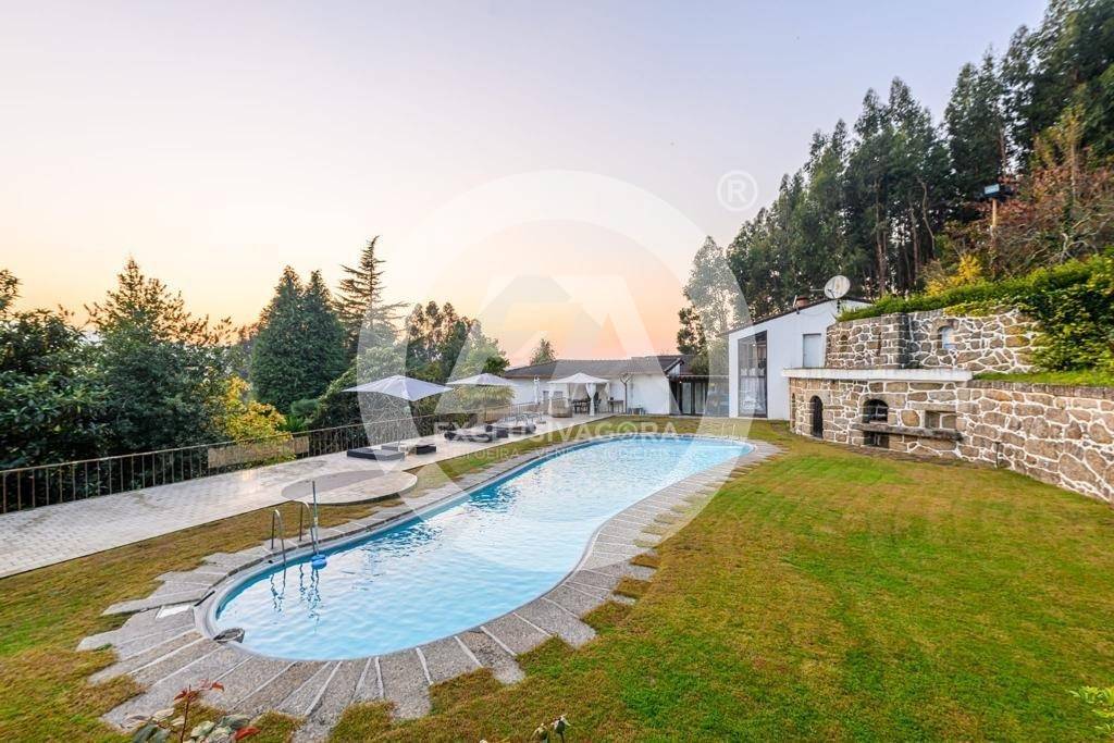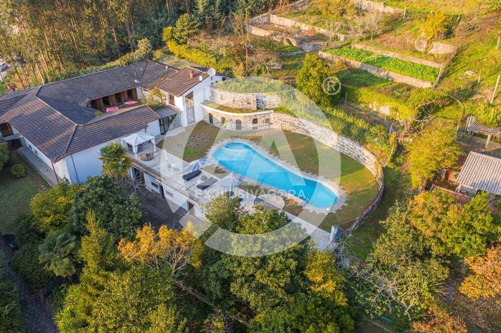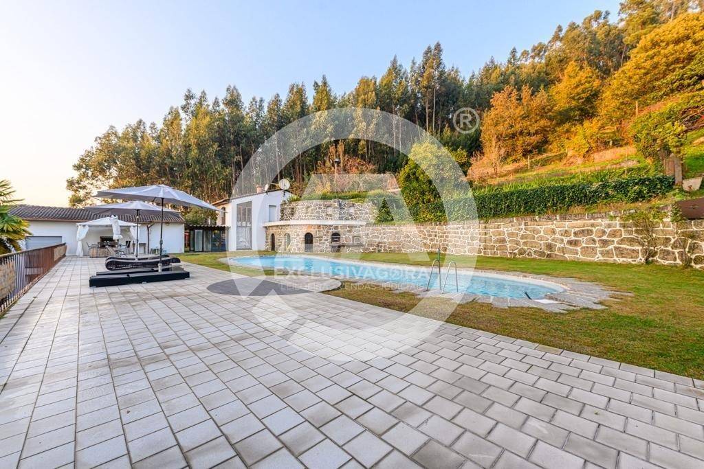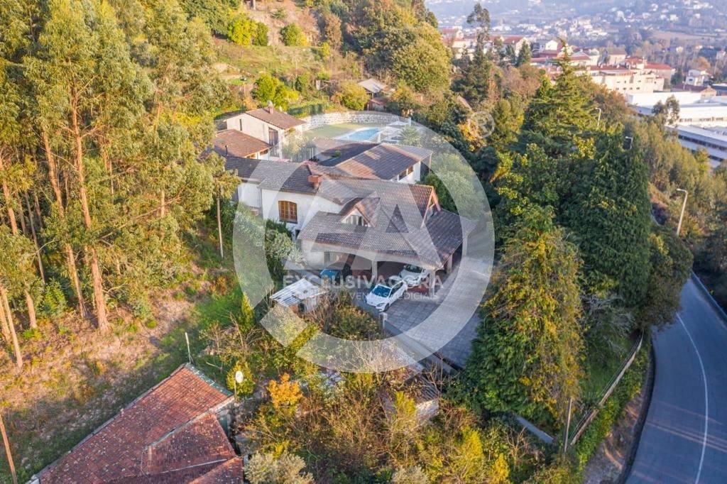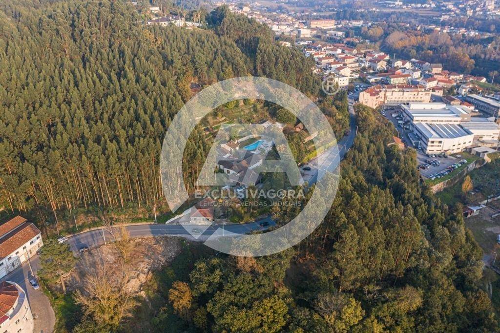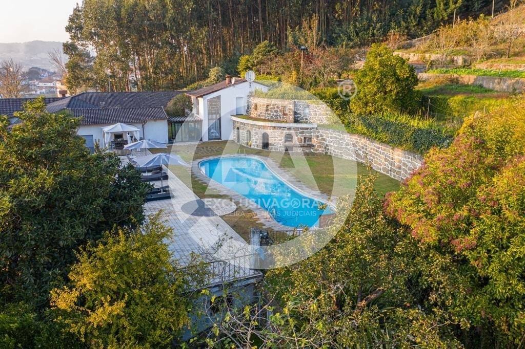 Prédio misto composto por casa com cave e rés-do-chão - artigo 157; pinhal, mato e eucaliptal - 9.600 m2 - artigo 235; "LEIRAS DO QUINTAL DA CASA" - cultura e pomar - 4.500 m2 - artigo 242; "ROÇO DO QUINTAL" - mato - 780 m2 - artigo 251; "QUINTAL DA CASA DO DANTAS" - cultura, ramada e pomar - 610 m2 - artigo 252, confrontado a Norte por Terras da Granja e de D. Paulina; a Sul por Estrada; a Nascente por terra de mato da Quinta da Casa Nova e a Poente por casa do Grilo e estrada, sito em Lagoas (Rua de Lagoas, nº 1154), da freguesia de Santo Adrião de Vizela, do concelho de Vizela, descrito na Conservatória do Registo Predial de Vizela sob o nº 57, da freguesia de Santo Adrião de Vizela, e inscrito na matriz predial urbana sob o artigo nº 157 e nas matrizes prediais rústicas nºs 235, 242, 251 e 252, da referida freguesia e concelho. - Fabulosa Moradia V5 com aspiração central, jardim, piscina, churrasqueira, sala de jogos, biblioteca, cave subterrânea c/ garrafeira, balneários, chuveiros, cozinha rústica e terreno envolvente com outra casa para restauro. - Os 5 quartos com suite e ainda dispõe de 2 WC' s independentes.