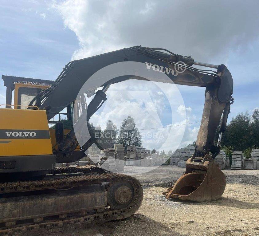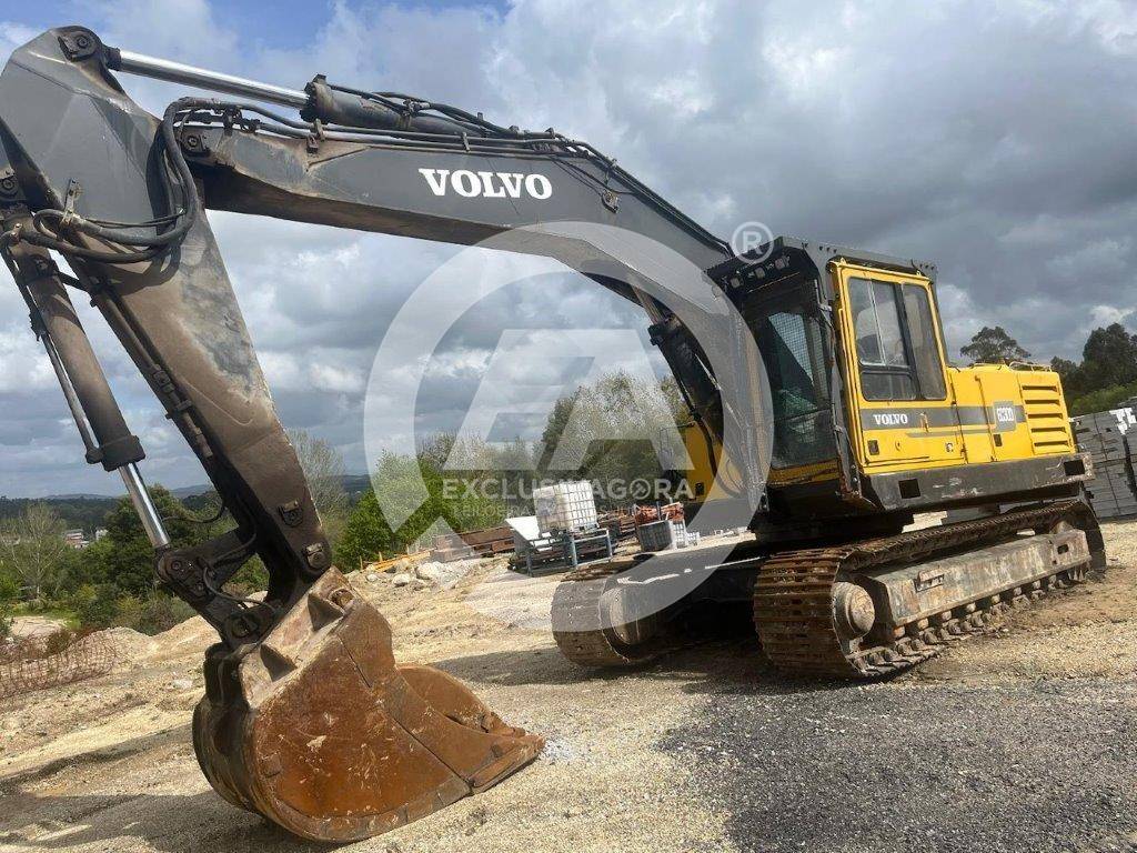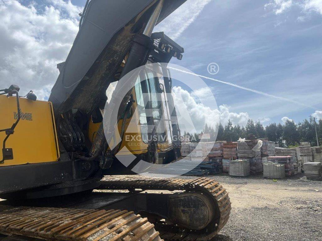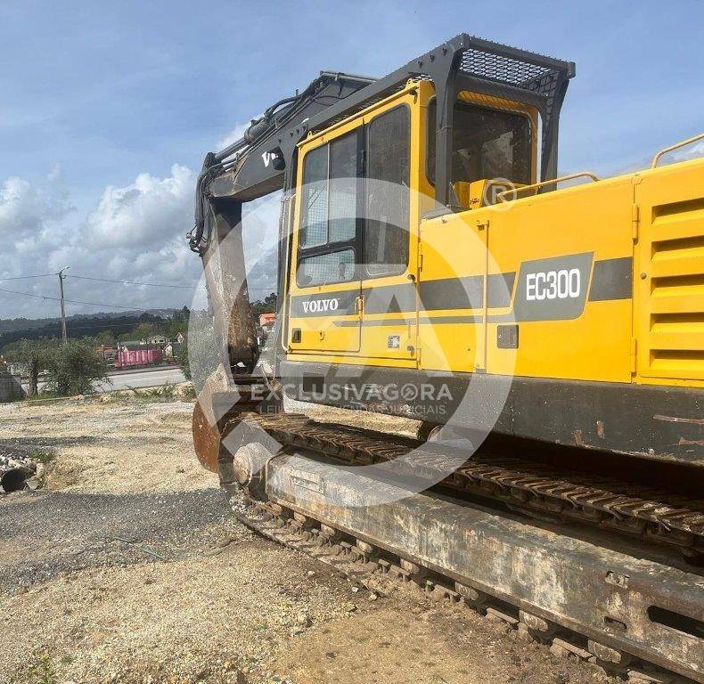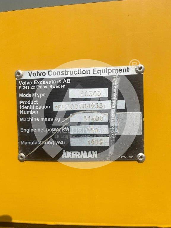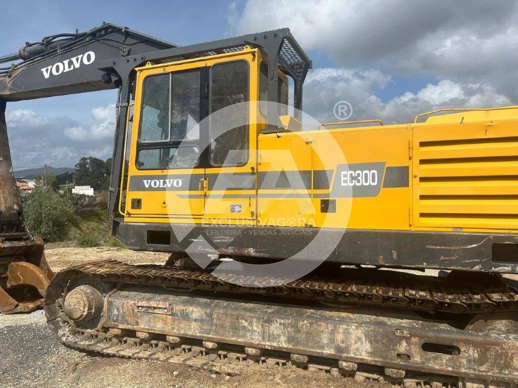 Escavadora giratória de rastos, da marca Volvo, modelo Akerman EC300, de 30 Ton., com 14.620 horas, de 1995. Tem acessórios, aceleração semiautomática e bomba hidráulica p/ combustível.