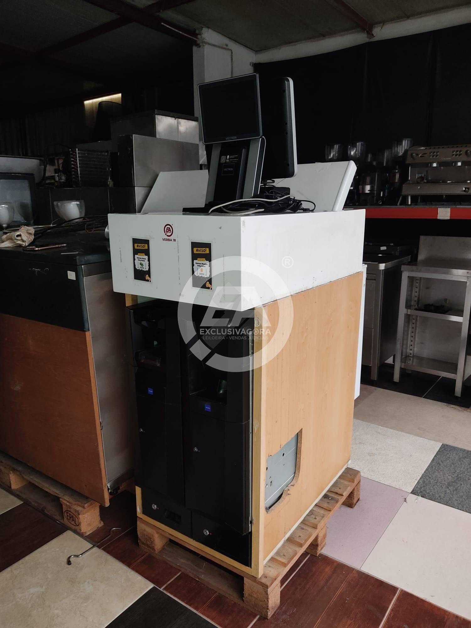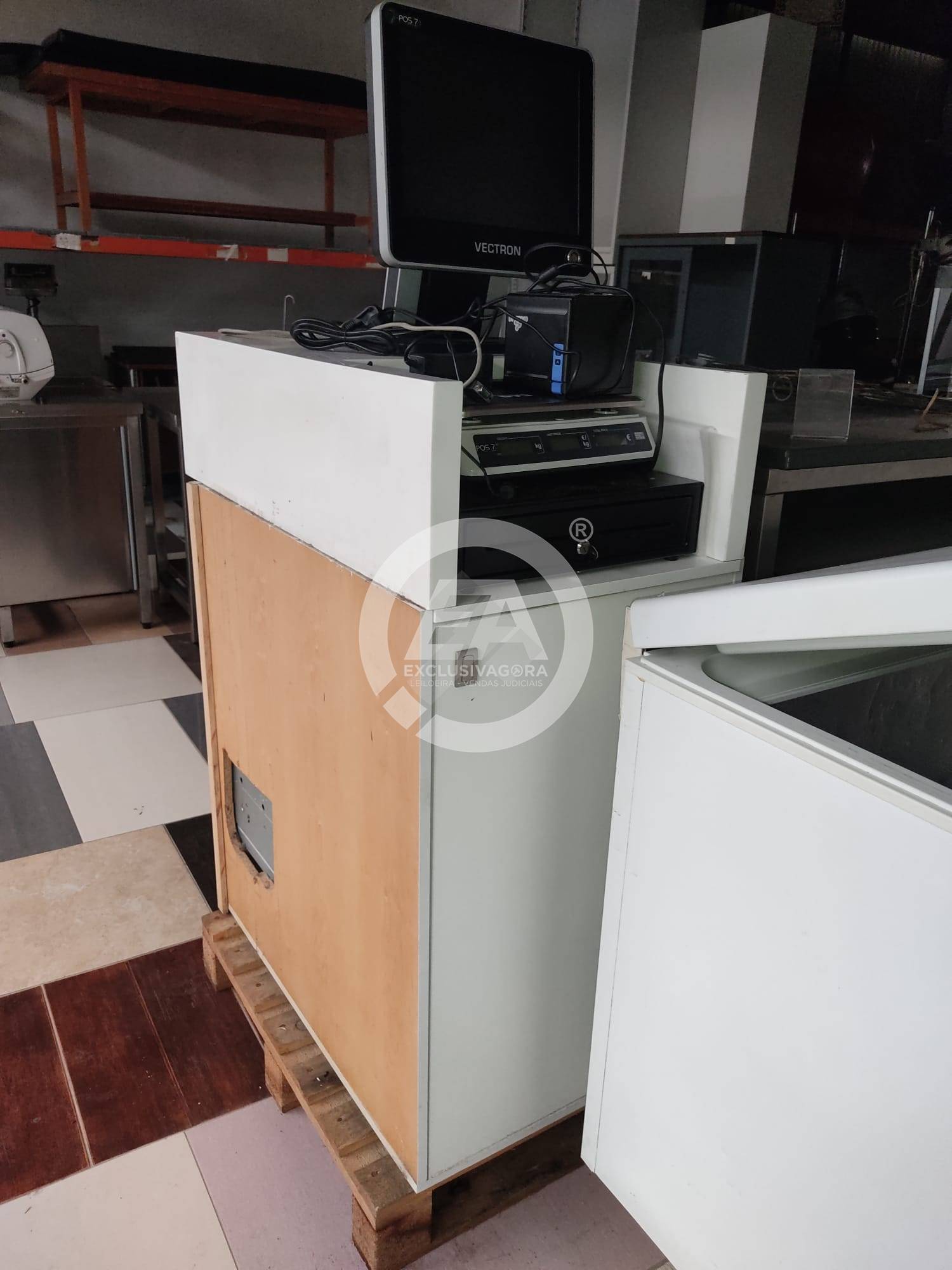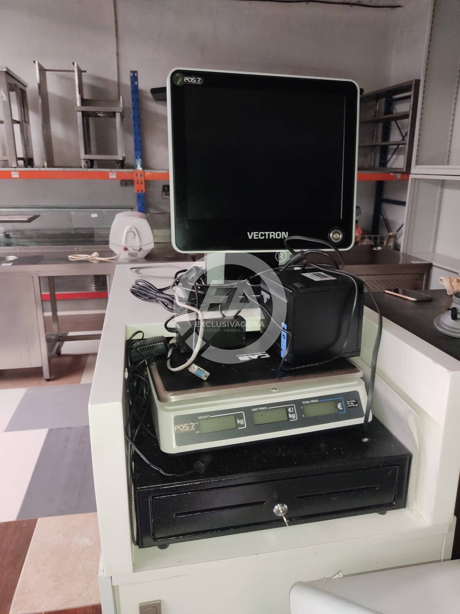 1 Caixa de pagamento automático (máquina de recirculação de numerário), da marca Glory, modelo CI-10; 1 ecrã touch, da marca Vectron POS Touch 7, com sistema de faturação incluído; 1 impressora térmica compacta, da marca Dream – Id; 1 balança, da marca CAS e 1 gaveta de dinheiro.